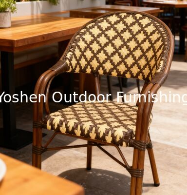 كراسي بذراعين على طراز المقهى مع إطارات من الألومنيوم على شكل خيزران صناعي
